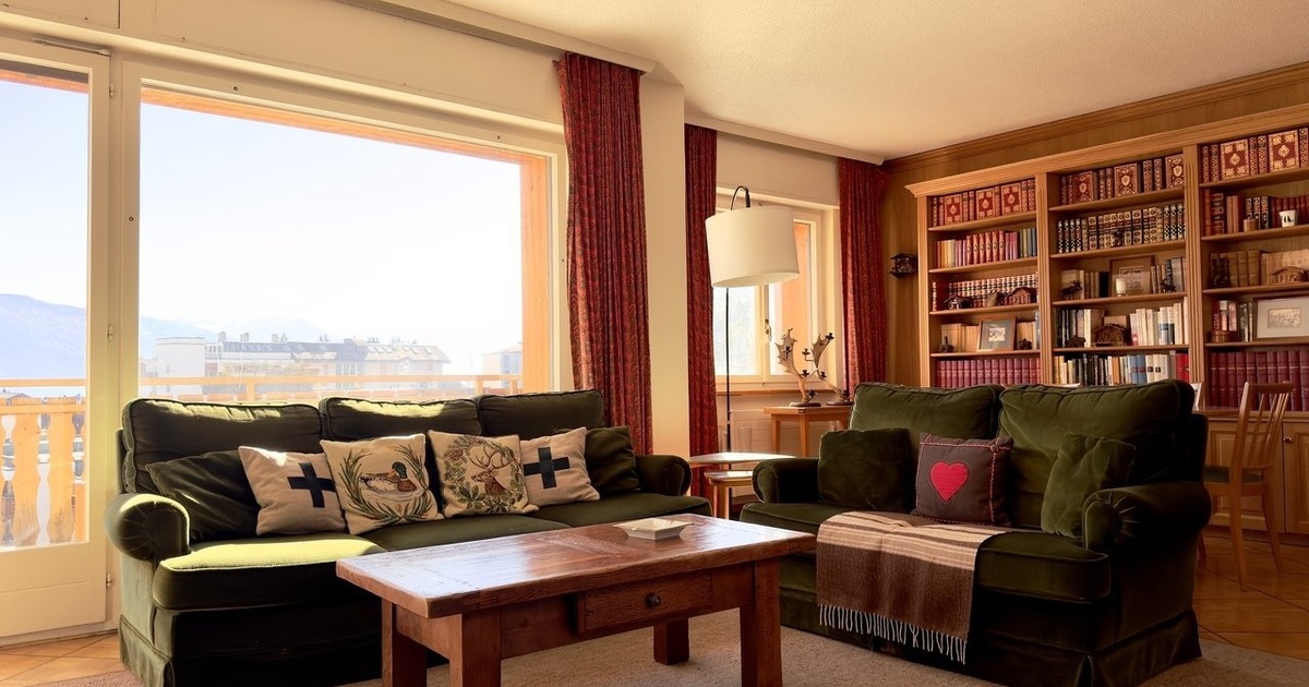 Disponible à partir de: CHF 2'450.-/semaine*. Découvrez ce superbe appartement de 4 chambres, situé en attique d'un immeuble au centre de la station de Crans-Montana . Bénéficiant d'une situation privilégiée , il offre un accès immédiat à toutes les commodités : commerces, restaurants, écoles et animations se trouvent au pied de l'immeuble , tandis que les remontées mécaniques sont à quelques pas seulement . Sa terrasse plein sud dévoile une vue panoramique sur les montagnes valaisannes et le village de Crans-Montana . Grâce à son exposition sud , l'appartement profite d'une luminosité exceptionnelle tout au long de la journée, créant une atmosphère chaleureuse. Ce bien rare est louable à la semaine ou à la saison , idéal pour un séjour à la montagne en famille , que ce soit en été ou en hiver . Profitez d'un cadre d'exception pour vos prochaines vacances à Crans-Montana. Comprenant: 1 salon/salle à manger sud avec TV, lecteur DVD, cheminée, avec accès sur terrasse 1 cuisine nord avec plaques vitrocéramiques, four, réfrigérateur, congélateur, lave-vaisselle, micro-onde 1 chambre nord avec 1 lit superposé (2 personnes), lavabo,accès sur balcon 1 chambre est avec 2 lits 1 place avec 1douche-lavabo attenants 1 wc séparé et lavabo 1 chambre sud avec 2 lits 1 place, TV, avec 1 douche-wc-lavabo attenants, avec accès sur terrasse 1 chambre sud avec 2 lits 1 place, avec 1 salle de bains-wc-bidet-lavabo attenants 1 local à skis Linge de maison, vaisselle, internet illimité. • Nos prix sont sujets à variation, selon la période et les saisons. Plus d'informations ? Contactez-nous sans plus attendre ! ImmoCrans SA +41 (0)27 483 83 83 Available from: CHF 2'450.-/week*. Discover this superb 4-bedroom apartment, located in the attic of a building in the center of the resort of Crans-Montana . Boasting a privileged location , it offers immediate access to all amenities : shops, restaurants, schools and entertainment are at the foot of the building , while the ski lifts are just a few steps away . His south-facing terrace unveils a panoramic view over the Valais mountains and the village of Crans-Montana . Thanks to its southern exposure , the apartment enjoys exceptional brightness throughout the day, creating a warm atmosphere. This rare property is rentable by the week or season , ideal for a mountain break with the family , whether in summer or winter . Enjoy an exceptional setting for your next vacation in Crans-Montana. Comprising: 1 south-facing living/dining room with TV, DVD player, fireplace, with access to terrace 1 north-facing kitchen with ceramic hob, oven, fridge, freezer, dishwasher, microwave 1 north-facing bedroom with 1 bunk bed (sleeps 2), washbasin,access to balcony 1 east-facing bedroom with 2 single beds with 1adjoining shower-washbasin 1 separate toilet and washbasin 1 south bedroom with 2 single beds, TV, with 1 adjoining shower-wc-washbasin, with access to terrace 1 south bedroom with 2 single beds, with 1 adjoining bathroom-wc-bidet-washbasin 1 ski room Household linen, crockery, unlimited internet. • Our prices are subject to variation, depending on period and season. More information?...