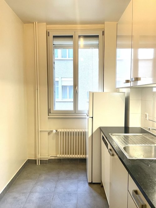 La rue de la Cité est une rue piétonne située dans les rues basses de l'hyper-centre de Genève. L'appartement que nous vous proposons se trouve au 2ème étage d'un immeuble de charme et de caractère avec cour intérieure et ascenseur. Il se compose comme suit : Une cuisine ouverte aménagée et équipée, un agréable séjour, une chambre à coucher et une salle de bain avec wc. Visite : M. Negreche - Régie Kornhaus : 079.585.40.23