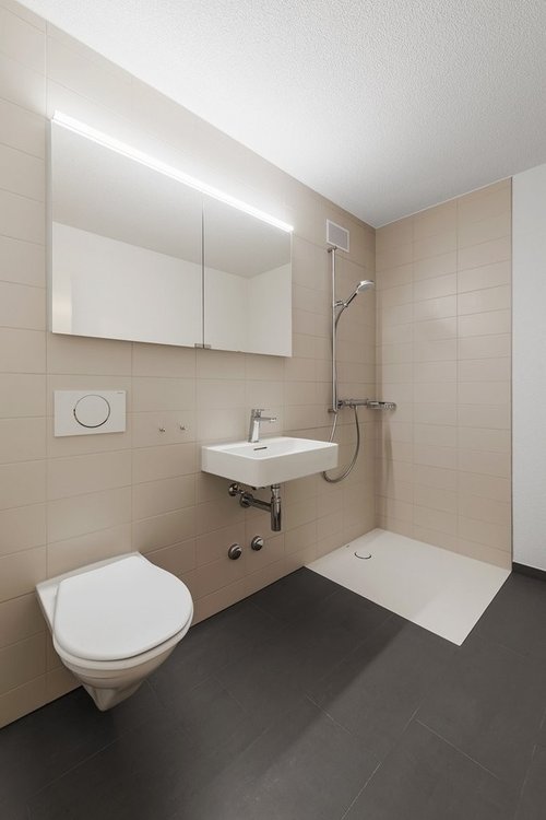 **Badezimmer & Komfort ** Auf jeder Etage befindet sich ein Badezimmer, einmal mit Dusche/WC und einmal mit Badewanne/WC. Nahe der Küche befindet sich dass grosszügige Reduit, zur Wohnung gehört ein Keller- und Estrichabteil.