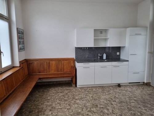 Hauptgebäude (ca. 119 m²): Aktuell ist noch der ehemalige Billettschalter vorhanden, der auf Wunsch entfernt wird. Die Fläche eignet sich hervorragend für Dienstleistungsunternehmen, Verkaufsflächen oder Take-Away-Konzepte.