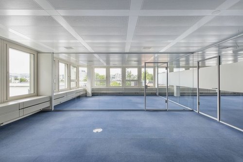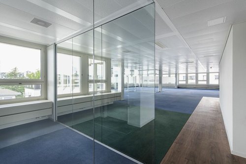 OBJEKTQUALITÄTEN • 1'206m² im 4. OG à CHF 230.00/m² p.a. • Attraktiver Mix aus Open Space und Team-Struktur - etliche Räume können sowohl als Einzelbüro- oder für Sitzungszimmer genutzt werden • Trennwände sind aus Glas, sodass ein attraktive Arbeitsplatzatmosphäre in allen Bereichen und Räumen sichergestellt ist • Die Flächen sind mit vorgekühlter Frischluft belüftet • Doppelboden, abgehängte Metall-Akustik-Decke, Grundbeleuchtung sowie aussenliegender Sonnenschutz • Ausgebaute Teeküche. • Anlieferungszone mit Laderampe ist direkt an die Flächen angrenzend • Parkplätze können dazugemietet werden • Lager im UG verfügbar • Weitere Büroflächen im 2. OG 1'212m² mit 320.00/m² p.a. / mind. Fläche ab ca. 600m² im Vormieterausbau • Gewerbefläche im EG mit ca. 700m² à CHF 220.00/m² p.a.
