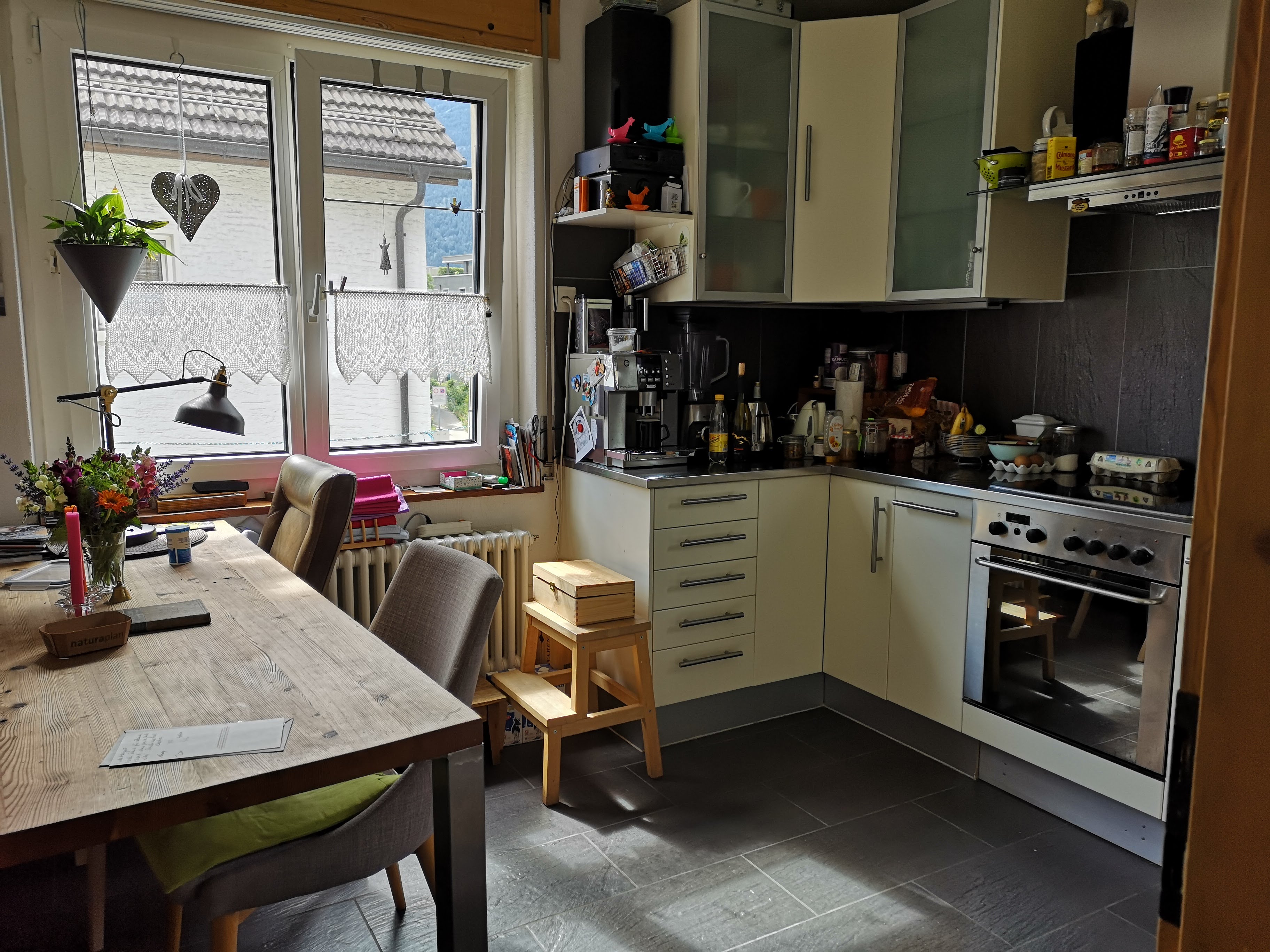 Hallo WG Sucherin oder Sucher, wir sind eine bunt zusammen gewürfelte Gemeinsamkeit, die einander toleriert, manchmal gemeinsam kocht oder allein im Zimmer seine Sachen macht! Es ist wohl von Vorteil wenn man vorbeischauen kommt und sich selbst ein Eindruck verschafft! Das Zimmer ist möbiliert und hat Zugang zu einem Balkon. Der Garten lädt im Sommer zum verweilen und grillieren ein.Grüsse aus dem Amselweg von Elea , Jose (ist nur 2 Nächte pro Woche da), Martin (wohnt in der Einliegerwohnung, ist aber viel bei uns), Roland (Wochenaufendhalter) und Margrith..