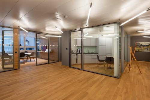 Das Postzäntrum an der Bahnhofstrasse 5 liegt an best frequentierter und zentraler Lage im Herzen von Huttwil. Die neuen, modernen Büroräumlichkeiten im 1. OG können im Shop-in-Shop-Konzept gemietet werden (siehe Grundrissplan / pdf-Dokument): – Mietfläche "violett": 63.3 m2 – Erschliessung vom EG: Liftanlage und Treppe Eine gut ausgestattete Küche und WC-Anlagen für Damen und Herren stehen zur Mitbenutzung bereit (Im Plan blau).