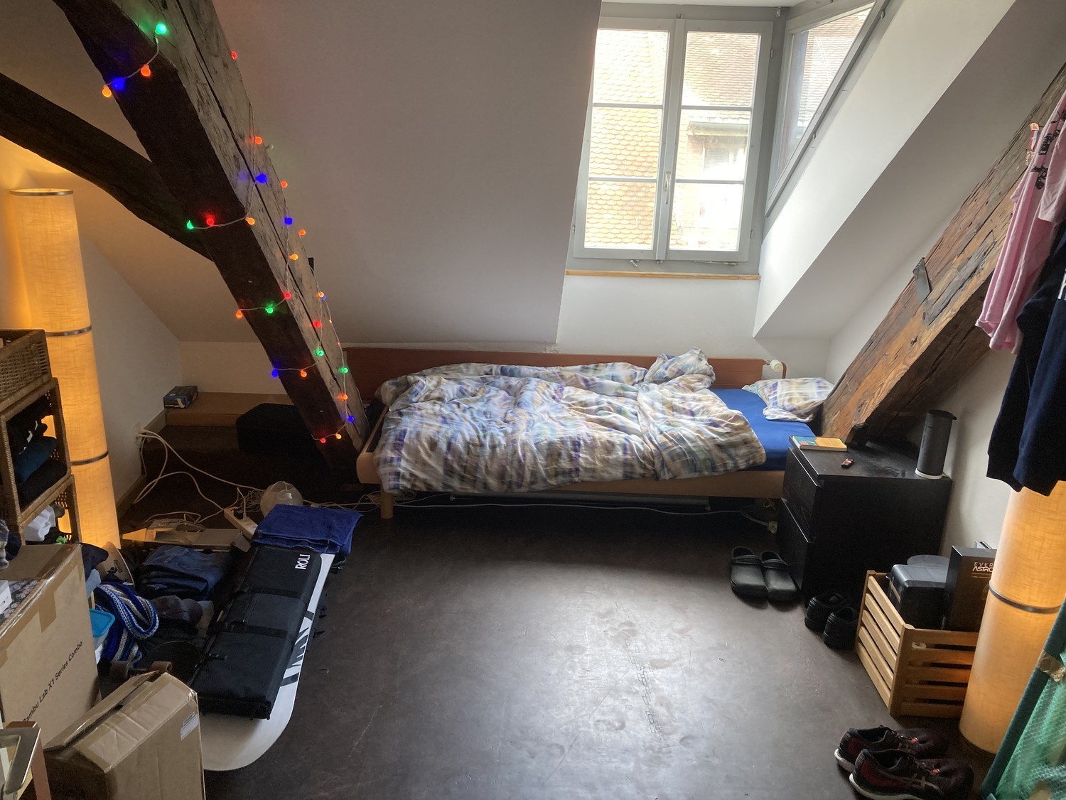 \[English version below\] Ein herziges Zimmer im 4-ten Stock vom Türmlihaus wird ab sofort frei. Das Zimmer ist teilweise möbliert und mit einem Lavabo ausgestattet. Die Wohnung ist Teil der Altstadt und liegt zentral (ca. 7 min zum Bahnhof) direkt gegenüber vom Technikum (ZHAW). Wir suchen jemanden, der kontaktfreudig ist und gerne Sachen unternimmt. Im Türmlihaus leben 32 Studierende – es ist also immer jemand anzutreffen. Das Zusammenleben ist unkompliziert und es werden oft WG-Essen oder Filmabende organisiert, sodass du schnell Anschluss findest. Du teilst dir zwei WCs und zwei Duschen mit sechs anderen Personen, welche im gleichen Stockwerk wohnen. Im Haus gibt es zwei Waschküchen, drei Küchen und ein Wohn- und ein Gemeinschaftszimmer (mit Billiardtisch und Töggelikaste). Während des Semesters findet jeden Donnerstag die Türmli-Bar statt. Du bist also immer in guter Gesellschaft :) Wichtig! Du musst die WOKO-Kriterien erfüllen, um das Zimmer mieten zu können. Das heisst: du musst studieren (an der UZH Universität Zürich, ETH Zürich, ZHAW Zürcher Hochschule für Angewandte Wissenschaften, Zürcher Hochschule der Künste (ZHdK), Pädagogische Hochschule Zürich (PHZH), Hochschule für Heilpädagogik Zürich (HfH) oder Kantonale Maturitätsschule für Erwachsene (KME)) und das Zimmer mindestens für 6 Monate mieten. Neben der Miete wird ein zusätzlicher Semesterbetrag für allgemeine Verbrauchsgegenstände (Putz-, Kochuntensilien etc.) von 160.- verrechnet. Wenn dir das Zimmer gefällt und du dich angesprochen fühlst, melde dich ungeniert und stelle dich kurz vor. Wir freuen uns, von dir zu hören! :) LG die Türmli-WG A lovely room on the 4th floor of the Türmlihaus is available immediately. The room is partially furnished and equipped with a washbasin. The flat is part of the old town and is centrally located (approx. 7 minutes to the train station) directly across from the Technikum (ZHAW). We are looking for someone who is sociable and enjoys participating in activities. There are 32 students living in the Türmlihaus, so there is always someone around. Living together is uncomplicated, and shared meals or film evenings are often organised, so you will quickly make friends. You will share two toilets and two showers with six other people who live on the same floor. The house has two laundry rooms, three kitchens, a living room and a community room (with a pool table and foosball table). During the semester, the Türmli Bar is open every Thursday. So you'll always be in good company :) Important! You must meet the WOKO criteria to be able to rent the room. This means that you must be a student at UZH, ETH Zurich, ZHAW, ZHdK, PHZH, HfH or KME and rent the room for at least 6 months. Besides the rent, there’s an additional semester fee of 160.- for general household items (cleaning supplies, cooking utensils, etc.). If you’re interested please send us a short description of yourself. We look forward to hearing from you! :) the Türmli-WG
