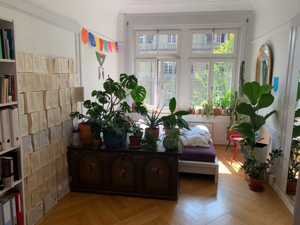 Das Zimmer (ca. 16 m²) ist Teil einer riesigen Altbau-Wohnung (insgesamt 7 Zimmer, 180m²). Es verfügt - wie der Grossteil der Wohnung - über Parkettboden, hohe, stuckierte Decke und hölzerne Wandvertäfelung. Zwei grosse, nach Süden ausgerichtete Fenster mit Rolladen versorgen es mit reichlich Helligkeit am Tag.In der Wohnung gibt es eine grosse Küche, ein Wohnzimmer, einen kleinen Balkon, ein voll ausgestattetes Bad, ein Gästezimmer, eine Abstellkammer zum Aufhängen der Wäsche und eine zusätzliche Gästetoilette. Zudem haben wir eine eigene Waschmaschine und einen Tumbler, ein Estrich- und Kellerabteil und eine Dachterrasse zur Mitbenutzung. Die Wohnung liegt gleich beim Hirschengraben - zentraler geht also kaum! Da dein Zimmer zur Strassenseite ausgerichtet ist, auf der auch die Trams verkehren, ist der tägliche Verkehrs-Betrieb hörbar. Die Miete beträgt 770.- CHF, alles inklusive. Weitere Kosten kommen keine dazu: Nebenkosten, Internet und Serafe werden aus der WG-Kasse bezahlt.Wir sind eine Vierer-WG: Fabian (35), Eli (50) und Marcel (47) - eine Kombi aus mal ruhigen, mal partyhungrigen, mal aufgestellten, mal ausgelaugten aber immer ordentlichen und wohnlichen Menschen. Wir sind für ein gemeinsames Znacht, eine ausgedehnte Diskussion bei einem guten Bier oder einen spontanen Aareschwumm fast immer zu haben. Wir pflegen das gemeinsame Wohnen, nehmen Rücksicht aufeinander, sind unabhängig und selbstbestimmt.Wir suchen eine:n neue:n Mitbewohner:in für unsere WG. Du bist eine unkomplizierte und offene Person, stehst fest im Leben, bist aber am Zusammenwohnen interessiert und siehst dies nicht nur als Zwischenlösung.Wenn das dein Interesse geweckt hat, schreib uns doch gerne etwas zu dir und an welchen genannten Terminen du Zeit hättest.