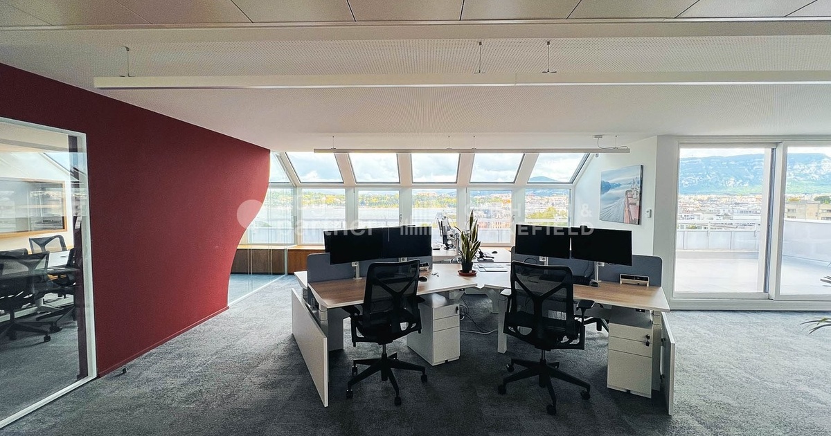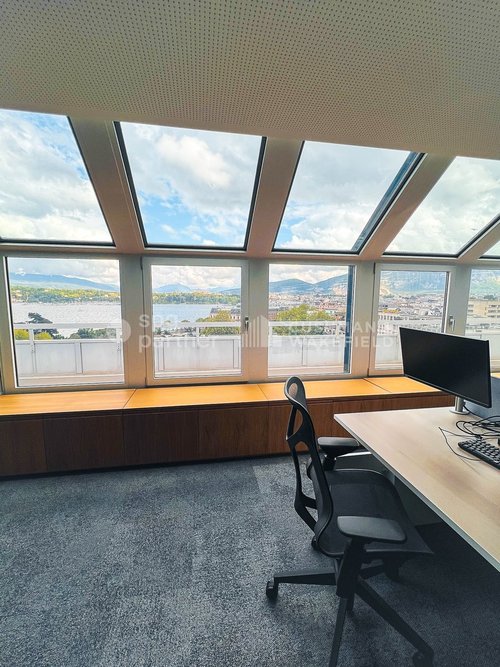Informations générales Rue de Lausanne 82, cette adresse stratégique se trouve dans un quartier prisé de Genève, entre les organisations internationales et le centre-ville. À proximité immédiate de la gare Cornavin , du bord du lac et des principaux axes routiers, elle offre un emplacement de choix. Le tram se trouve au pied de l’immeuble , qui dispose également de nombreuses places de parking . Situés au 8e étage d’un immeuble de standing, ces bureaux de 190 m² bénéficient d’un aménagement de qualité et d’une belle luminosité. Entièrement équipés, ils comprennent une grande salle de réunion, une cuisine avec espace cafétéria, ainsi que plusieurs espaces de travail optimisés. Le tout est conçu pour offrir un environnement fonctionnel et confortable, adapté aux exigences d'une entreprise moderne. L’atout majeur de cette surface réside dans sa vue dégagée sur le lac ainsi qu'une terrasse privée , apportant une réelle valeur ajoutée au cadre de travail quotidien. Les locaux sont immédiatement opérationnels et conviendraient parfaitement à une société souhaitant s’implanter rapidement dans un environnement professionnel de qualité, à proximité du centre-ville et des organisations internationales. • Loyer : Prix sur demande • Charges?: NR • Disponibilité?: immédiate • Type de contrat?: Reprise de bail • Indexation?: Oui