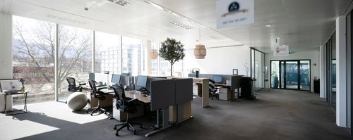 Les façades vitrées amènent une grande luminosité aux surfaces.