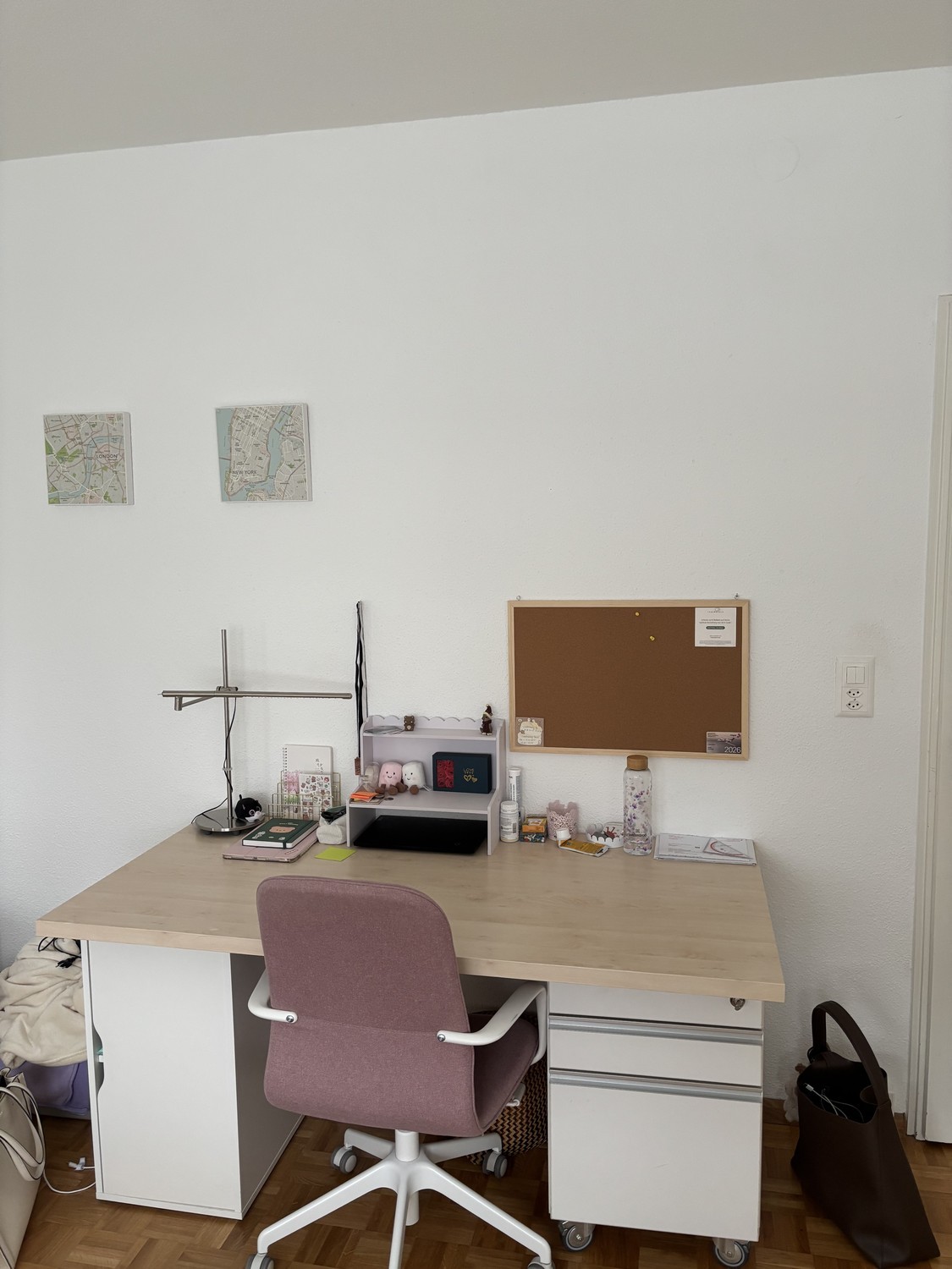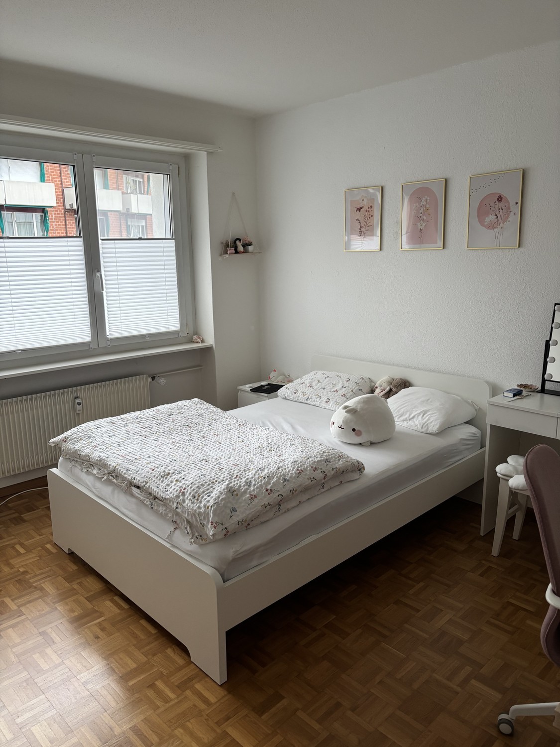 In unserer schönen 6-Zimmer-Wohnung im ruhigen Gotthelfquartier wird ab dem 01.05. ein grosses und helles Zimmer frei. Das Zimmer ist grosszügig geschnitten und bietet durch die ruhige Lage eine sehr angenehme Wohnatmosphäre. Gerne würde ich ein paar Möbel im Zimmer lassen, Details dazu können wir aber individuell nach Absprache klären. Du würdest mit Chiara (22) und Ravith (21) zusammenwohnen. Zusätzlich lebt für ein halbes Jahr Nicolo, ein Austauschstudent, bei uns – er ist hier als Ersatz für Jim, der selbst im Austausch ist. Wir sind alle Studierende und führen ein unkompliziertes, respektvolles WG-Leben. Uns ist eine angenehme und harmonische Atmosphäre wichtig: Man trifft sich gerne mal in der Küche für ein Gespräch, gleichzeitig respektieren wir aber auch den Rückzug und die Privatsphäre jeder Person. Die Wohnung befindet sich im beliebten Gotthelfquartier in ruhiger Umgebung. Die Universität Basel sowie die FHNW Muttenz sind gut erreichbar, und auch ins Stadtzentrum von Basel ist man schnell unterwegs. Einkaufsmöglichkeiten und öffentliche Verkehrsmittel befinden sich ebenfalls in der Nähe. Die Miete beträgt CHF 722.– pro Monat. Wir suchen ausschliesslich eine weibliche Mitbewohnerin, die gut zu uns passt und an einem harmonischen Zusammenleben interessiert ist. Wenn du Interesse hast, freuen wir uns sehr über eine Nachricht mit ein paar Infos zu dir (Alter, Studium, Hobbys etc.). :)