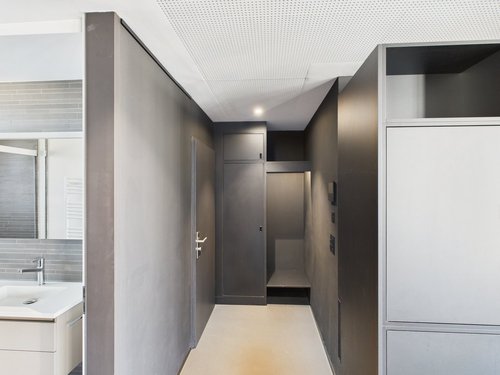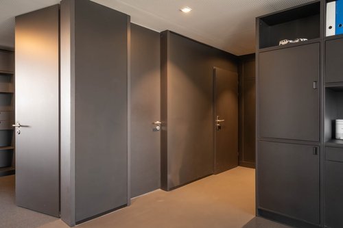 Das Büro ist mit einem Unterboden ausgestattet, der eine ordentliche und effiziente Kabelführung ermöglicht. Zudem verfügt es über ein WC und eine Küche, was zu einer angenehmen Arbeitsatmosphäre beiträgt. Ein Balkon lädt dazu ein, Pausen im Freien zu genießen und frische Luft zu schnappen.