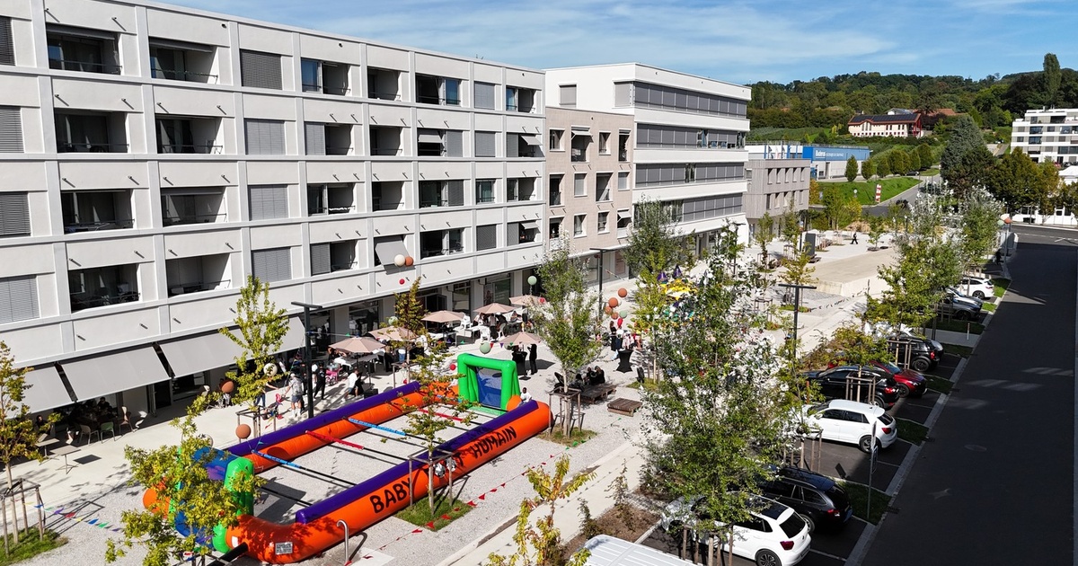 Quartier • 1'000 futurs habitants (420 appartements) • Ecole primaire et EMS • 7'300 m2 surfaces commerciales • Accès facile aux transports en commun (BHNS) • 1km de l'autoroute A1 • Divers parkings publics/privés à l'extérieure et à l'intérieure • Quartier moderne et équipé avec panneaux photovoltaïques, bornes de recharge pour véhicule électrique, emplacement Mobility Car Sharing et station PubliBike