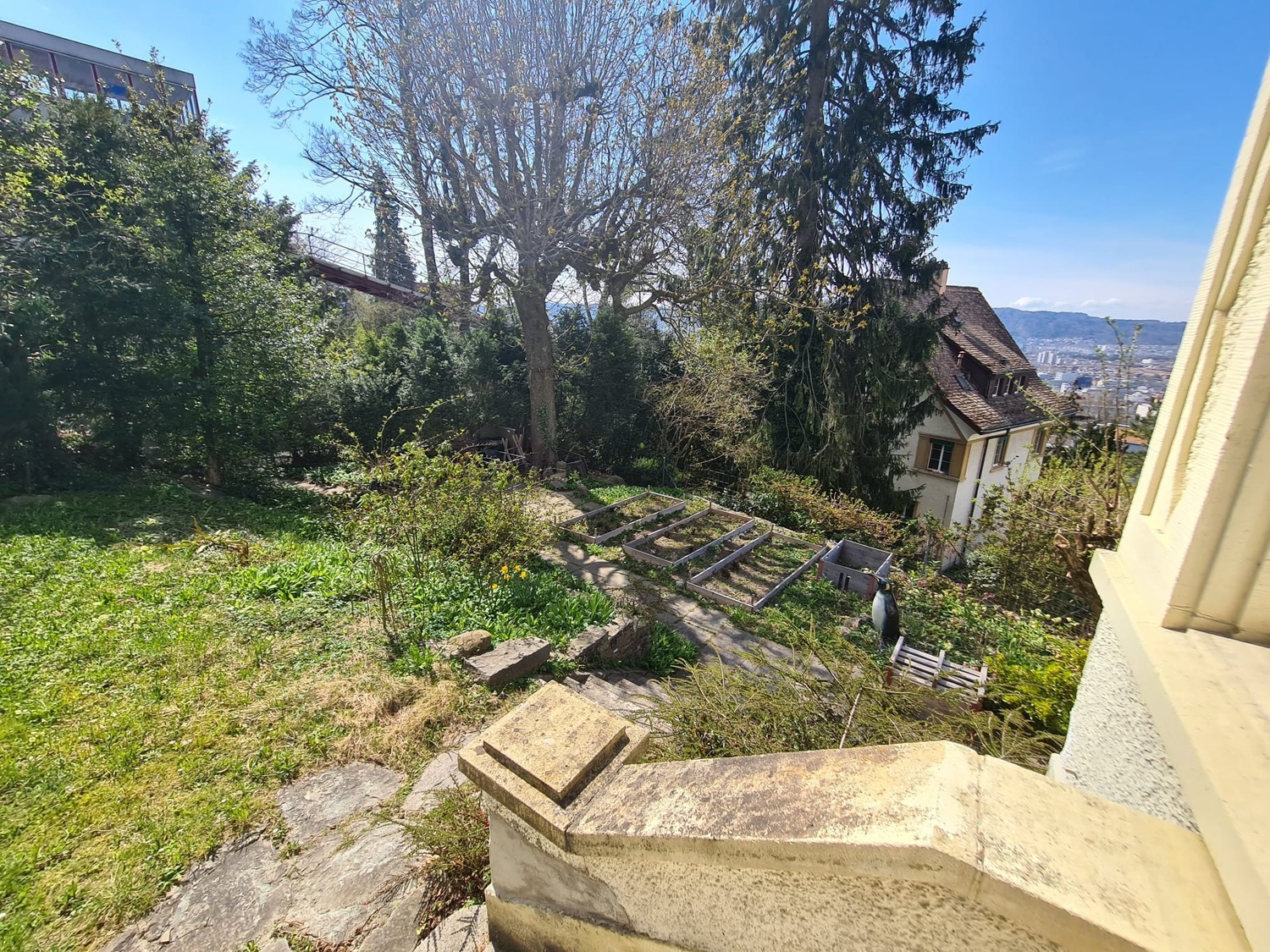 Dein Zimmer Das Zimmer selbst ist eher klein, dafür sehr gemütlich. Für alle, die im Homeoffice arbeiten oder einfach mal mehr Platz brauchen, steht in einem der Wohnzimmer zusätzlich ein Schreibtisch zur Verfügung. Das Haus erstreckt sich über drei Stockwerke und bietet dadurch viel Privatsphäre und Freiraum. Wir sprechen (fast) alle (CH-)Deutsch und Englisch und haben je nach Hintergrund noch ein paar weitere Sprachen im Repertoire. Deine Lage Wir schätzen unser Haus sehr. Von zwei Balkonen aus haben wir eine recht wunderschöne Aussicht über ganz Zürich. Rund ums Haus gibt es einen grossen Garten, in dem auch mal gemeinsam angepackt wird. Das Quartier ist ruhig und liegt nahe beim Rigiblick und Zoo - der Weg in die Natur ist also nur einen Katzensprung entfernt. Deine Mitbewohner Deine zukünftigen Mitbewohner:innen wären: Chloe (Tierärztin und Pferdeflüsterin) - hat schon in x Ländern gelebt, findet Blindschleichen süss und kann mit ihrem Lachen jede:n aus einem Tag mit schlechter Laune retten Vinzenz (Data Engineer) - entweder tiefenentspannt in der Hängematte im Wald oder auf Ricardo unterwegs; WG-Gesundheitsengel mit einer erstaunlich gut ausgestatteten Haushaltsapotheke Tino (Maschinenbauer) - unser inoffizieller WG-Papa, immer zu haben für ein Bierchen und ein gutes Gespräch auf der Terrasse; weiss ausserdem, wie man so ziemlich alles repariert Tim (Finance Guru) - Neuzugang und grossartiger FC St. Gallen Fan. Flucht zu Fußballspielen am Tablet und treibt gerne Sport. Lebensgrosser Zinseszins-Rechner der gerne kocht und gute Unterhaltungen schätzt. Francesco (Psychiater) - leidenschaftlicher Bergsportler, Natur- und Gartenmensch und unser WG-Philosoph mit Sinn für tiefe Gespräche. Ebenso sehr guter Koch! Flora - Die mit dem grünen Daumen und grossen Hang zu Wintersport. Junges Alter und dennoch die inoffizielle WG-Mama. Kann nicht stillsitzen und immer in Bewegung (im guten Sinne). Wir sind definitiv keine Zweck-WG. Trotz eigener Leben verbringen wir immer wieder gerne Zeit miteinander – sei es bei Gesprächen, beim gemeinsamen Essen oder einfach draussen im Garten. Dein Sonstiges In den Nebenkosten inbegriffen sind unter anderem die Kosten für eine Putzkraft, die einmal pro Woche kommt und sich um die Pflege der Gemeinschaftsräume kümmert. Das Zimmer steht zum 01.04. zur Verfügung (nach Absprache auch später). Ein weiteres Zimmer wird im Sommer aufgrund von Familienplanung im Sommer frei. Solltest du also erst im Sommer (Juni, Juli, August) umziehen wollen, kannst du ebenso gerne vorbeikommen. Wenn du dich in dieser Beschreibung wiederfindest und das Gefühl hast, gut in unsere WG zu passen, freuen wir uns sehr über ein paar Zeilen zu dir. Herzliche Grüsse deine WG Germi-strasse 🏡 \ Your Room The room itself is rather small, but very cozy. For anyone who works from home or simply needs more space, there is an additional desk available in one of the living rooms. The house spans three floors, which provides a lot of privacy and room to breathe. We speak (mostly) Swiss German and English and, depending on background, a few other languages as well. Your Location We really appreciate our house. From two balconies we have a pretty wonderful view over the whole of Zurich. Around the house there is a large garden where people sometimes pitch in together. The neighborhood is quiet and close to Rigiblick and the zoo — so access to nature is just a stone’s throw away. Your Housemates Your future housemates would be: Chloé (veterinarian and horse whisperer) – has lived in several countries, finds slow‑worms cute, and can lift anyone out of a bad‑mood day with her laugh. Vinzenz (data engineer) – either deeply relaxed in the hammock in the woods or browsing Ricardo; the flatshare’s health angel with an impressively well‑stocked household first‑aid kit. Tino (mechanical engineer) – our unofficial flatshare dad, always up for a beer and a good conversation on the terrace; also knows how to fix pretty much anything. Tim (finance guru) – newcomer and great FC St. Gallen fan. Escapes to football matches on his tablet and likes to do sports. A living, breathing compound‑interest calculator who enjoys cooking and good conversations. Francesco (psychiatrist) – passionate mountaineer, nature and garden person, and our flatshare philosopher who appreciates deep conversations. Also a very good cook. Flora – the one with the green thumb and a big love of winter sports. Young but the unofficial flatshare mum. Can’t sit still and is always on the move (in a good way). We are definitely not a purely functional flatshare. Despite having our own lives, we enjoy spending time together again and again — whether chatting, eating together, or simply being outside in the garden. Other Information Included in the utilities is, among other things, the cost of a cleaner who comes once a week and takes care of the communal areas. The room is available from 1 April (later by arrangement is possible). Another room will become available in the summer due to family planning. So if you only want to move in during the summer (June, July, August), you are also welcome to come by. If you recognize yourself in this description and feel you would be a good fit for our flatshare, we would be very happy to receive a few lines about yourself. Kind regards Your WG Germi‑strasse