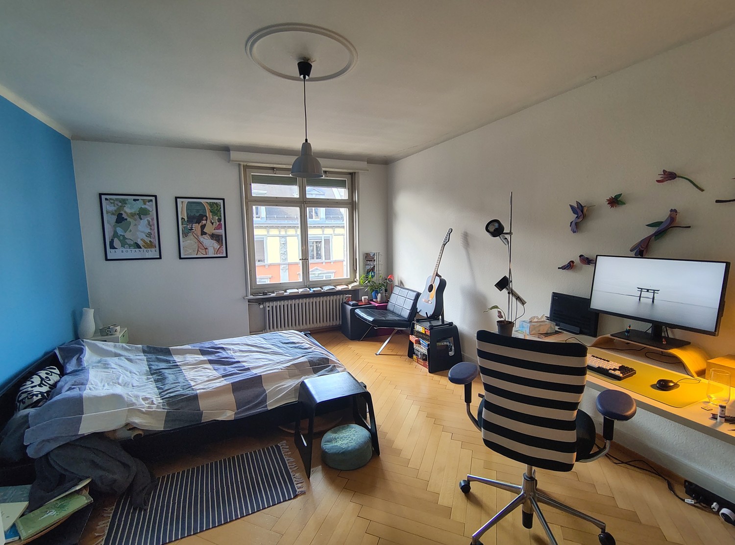 English below :) Ich suche einen Nachmieter für mein Zimmer in einer Erwachsenen-WG beim Haldenbachplatz in Zürich. Die Wohnung ist sehr geräumig (130 m² für 2 Personen) und hell. Das Zimmer ist ca. 18 m² gross und teilweise möbliert (Bett, Bücherschrank, Schreibtisch, Sessel etc.). Das Einzugsdatum ist relativ flexibel, frühestens 2.04. Die Wohnung verfügt über ein grosses Wohnzimmer, eine grosszügige Küche, ein Gästezimmer sowie zwei Balkone. Zusätzlich gibt es eine grosse Dachterrasse mit Ausblick über die Stadt. Die Waschküche wird mit den anderen Wohnungen im Haus geteilt. Die Lage ist sehr zentral: Den Hauptbahnhof erreicht man in etwa 10 Minuten zu Fuss (der Rückweg ist bergauf). Die Tramhaltestelle Haldenbach (Linien 9 und 10) ist nur 2 Minuten entfernt. Direkt im Haus befindet sich ein Café, und viele Geschäfte und Restaurants sind in unmittelbarer Nähe. Dennoch ist die Wohnung ruhig gelegen. Du würdest die Wohnung mit einer berufstätigen Architektin teilen. Das Zusammenleben ist eher ruhig und unkompliziert. Wichtig ist ein sorgfältiger und sauberer Umgang mit der Wohnung und ein regelmässiges Einkommen. Bei Interesse freue ich mich über eine Nachricht. \ I am looking for a new tenant for my room in a shared 2-person apartment in a prime location near Haldenbachplatz in Zurich. The room is approximately 18 m² and partially furnished (bed, bookshelf, desk, armchair, etc.). The apartment is very spacious (130 m²) and bright. It includes a large living room, a generous kitchen, a guest room, and two balconies. There is also a large rooftop terrace with a view over the city. The laundry room is shared with the other apartments in the building. The location is very central: Zurich main station can be reached in about 10 minutes on foot (the way back is uphill). The tram stop Haldenbach (lines 9 and 10) is just 2 minutes away. There is a café directly in the building, and many shops and restaurants are nearby. Despite the central location, the area is relatively quiet. You would share the apartment with a working architect. The atmosphere in the flat is calm and uncomplicated. It is important that you have a regular income and take good care of the apartment. If you are interested, feel free to send me a message.