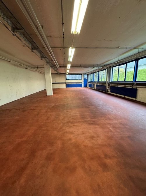 ländliche Lage - motorisiert sehr gut erreichbar grosszügige, helle Gewerbefläche von 380m2 im 2. UG mit Fensterfront - eigene Toilette im Objekt - direkte Zufahrt mit grosser Toranlage für Warenumschlag - Der vielseitig nutzbare, flexibel ausbaubare Raum eignet sich für Gewerbe, Fabrikation, Lager, Büros, Atelier, Ausstellung, Schulungsraum etc. - das Objekt könnte auch unterteilt werden - Parkmöglichkeiten können dazu gemietet werden.