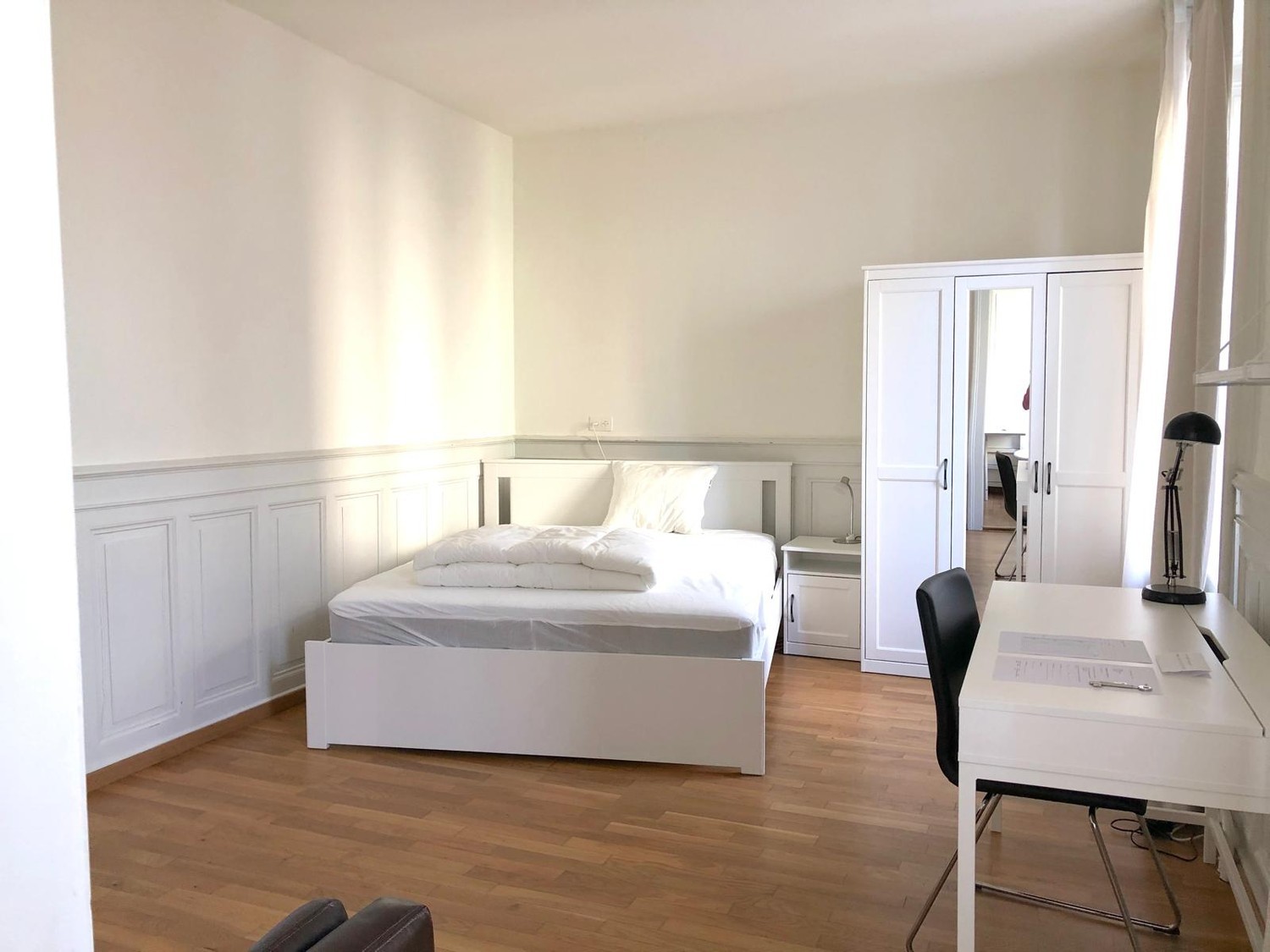Live right in the center of Zurich, surrounded by restaurants, bars, and everyday essentials just steps from your door. The Room Spacious, bright, and fully furnished en-suite room with a private bathroom. Designed for comfort and privacy in a shared flat. Includes: Large double bed Bedside table Wardrobe & shelving Armchair Desk & chair Private bathroom Individual room keyThe Apartment A well-maintained shared flat with: 4 large bedrooms Cozy living area Fully equipped kitchen (dishwasher, fridge/freezer, cookware, utensils) Shared common spaces with 3 housemates - young professionalsLocation Highlights 1 min walk to Helvetiaplatz 1 min to Tram 8 / Bus 32 10 min walk to Zurich HBAdditional Perks Weekly cleaning of shared areas included All utilities included (internet, water, electricity, heating) Washing machine available in the building (no schedule)Rent 1’590 CHF/month (for unlimited contract)Perfect for newcomers to Zurich or anyone looking for a comfortable, central living space with an easy move-in. Available now to move in.