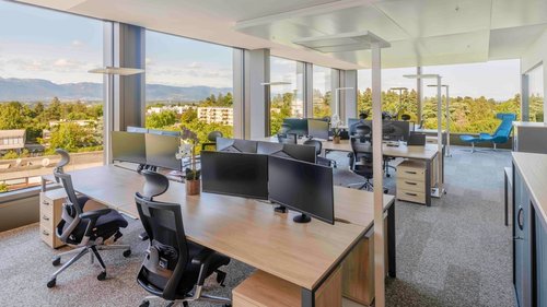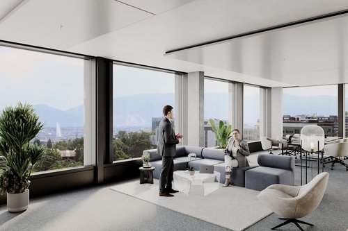 The Kyoto building stands as a prominent feature within Green Village, an ambitious real estate development providing over 14,000 m² of premium office space in the heart of international Geneva. With 310 m² of flexible workspaces nestled in this verdant haven, the complex creates an integrated campus where offices, residences, retail spaces, and common areas coexist harmoniously.